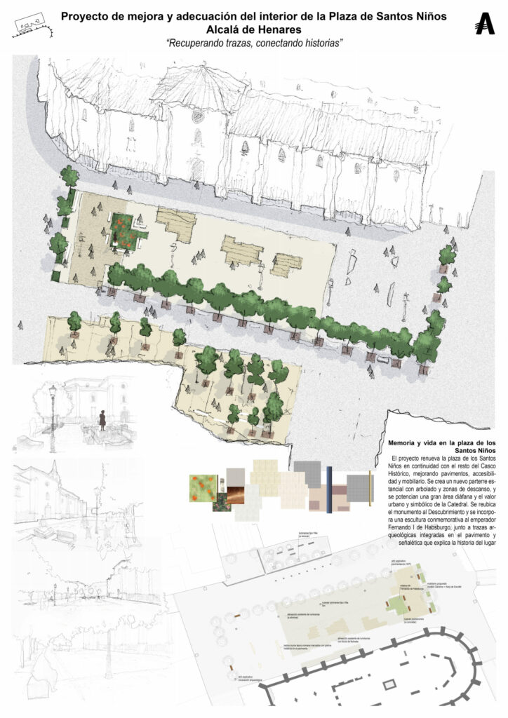 El proyecto de mejora y adecuación del interior de la Plaza de los Santos Niños, una intervención cuenta con una inversión de un millón de euros y un plazo estimado de ejecución de once meses. Esta actuación permitirá cerrar uno de los grandes ejes urbanos y patrimoniales de Alcalá, con una intervención que refuerza el papel de este enclave como espacio monumental y como punto neurálgico de la vida ciudadana y turística. Esta actuación es posible tras la firma del convenio de colaboración entre el Ayuntamiento de Alcalá y el Obispado el pasado mes de junio.