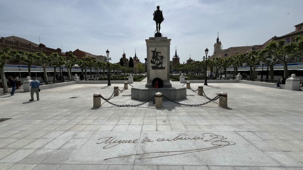 Dentro de la reforma de la Plaza se han instalado unas letras como ocurre en otras ciudades para hacer «marca» de la ciudad. También se ha puesto la firma de Cervantes a los pies de su famosa estatua