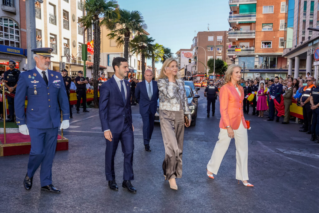 En primera línea, junto a las autoridades civiles y militares, doña Elena y doña Cristina, siguieron atentamente el desarrollo del acto castrense junto al alcalde de Torrejón, Alejandro Navarro, quien estuvo siempre muy pendiente de las infantas.