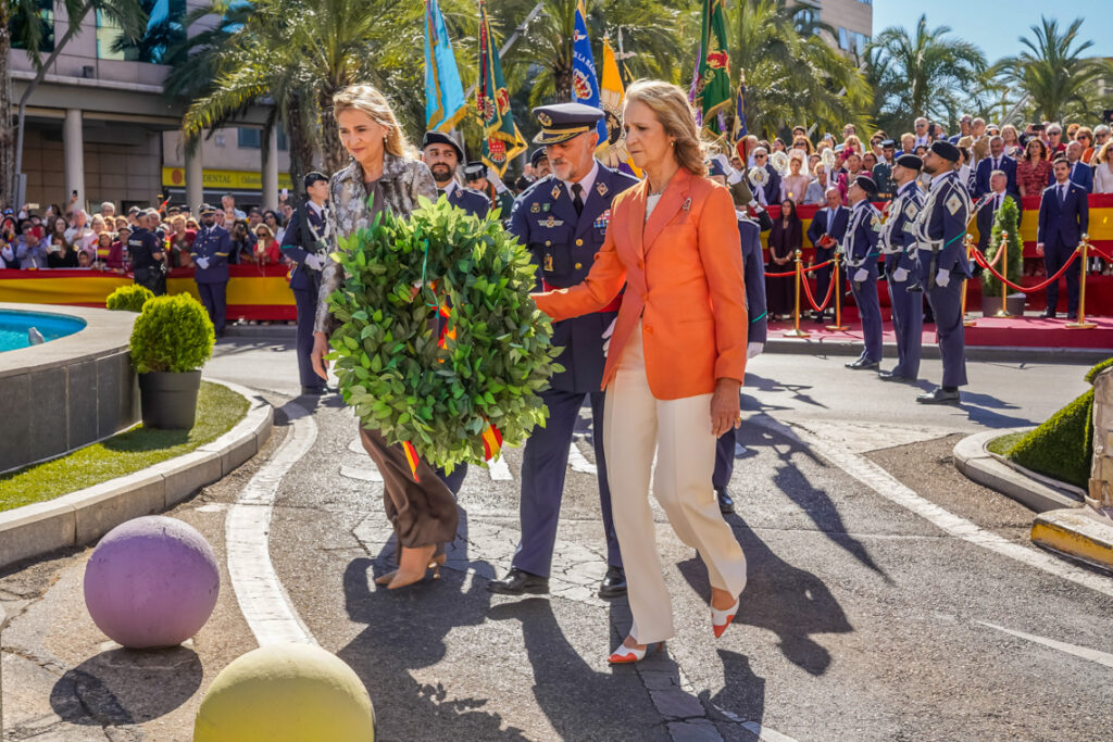 Invitadas por el Ayuntamiento, las hermanas del rey Felipe VI quisieron mostrar su apoyo a las Fuerzas Armadas, participando en un acto de gran carga simbólica que ha reunido a autoridades civiles y militares en la plaza de España.