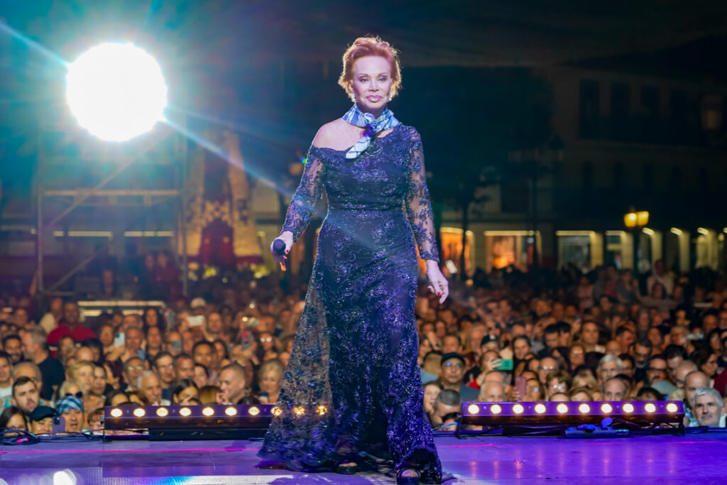 El viernes, tras el pregón, una abarrotada Plaza Mayor disfrutó de la gran voz de Paloma San Basilio (foto inferior), una de las artistas más elegantes y queridas de la música latina, que se despide de los escenarios tras 50 años de carrera con su Tour Gracias.
