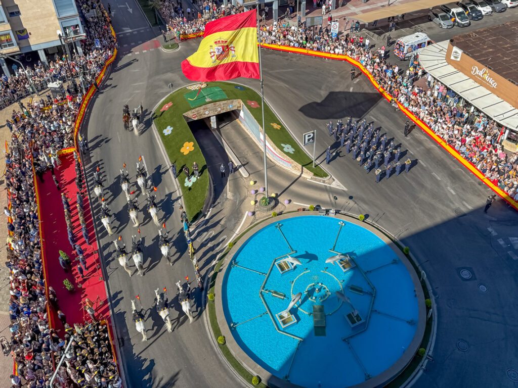 Las infantas hicieron la ofrenda a los caídos en un emotivo acto y desfile militar que debido al fuerte viento no pudo contar con la participación de la Patrulla Acrobática de Paracaidismo del Ejército del Aire, pero sí con una importante representación de nuestras Fuerzas Armadas, así como de las Fuerzas y Cuerpos de Seguridad del Estado.