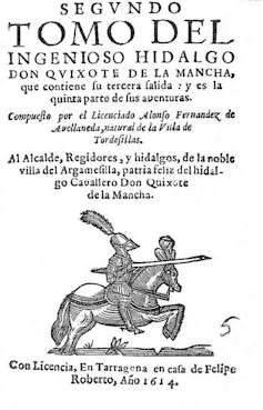 En 1605, se publicó la primera parte del Quijote de Cervantes. En 1614 se publicó una continuación falsa o apócrifa, firmada con el nombre de “Alonso Fernández de Avellaneda, natural de la villa de Tordesillas”. Por eso se conoce como el Quijote apócrifo de Avellaneda.