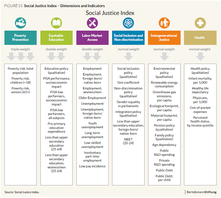 Con carácter anual se publica el Índice de Justicia Social , lo que nos permite conocer la situación de en términos de justicia social para cada país que participa, su evolución respecto de ediciones anteriores, y una comparativa entre todos ellos.