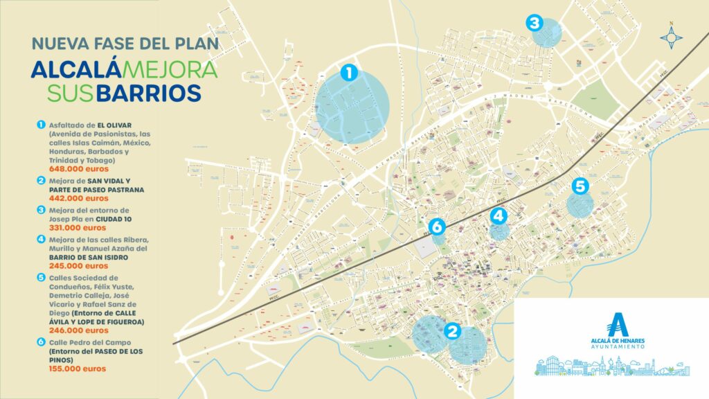 El plan contempla actuaciones en barrios como El Olivar, Ciudad 10, San Isidro, Paseo de Pastrana o San Vidal. La alcaldesa Judith Piquet, destaca que “Alcalá de Henares está inmersa en el proyecto de transformación y de mejora urbana más importante de los últimos años”.