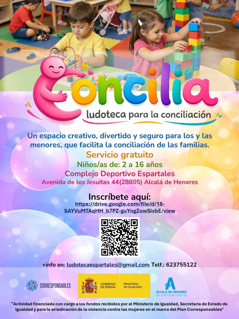 El Ayuntamiento de Alcalá de Henares, a través de la Concejalía de Igualdad y su Plan “Corresponsables”, pone en marcha dos iniciativas encaminadas a facilitar a las familias la conciliación de la vida laboral y familiar en horarios de tarde de lunes a viernes y los fines de semana.