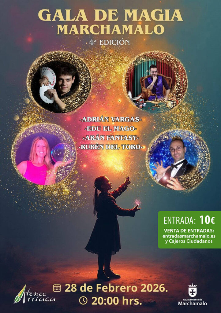 Por un lado, el IV Festival de Magia de Marchamalo se celebrará el sábado 28 de febrero a las 20.00 horas, donde actuarán cuatro magos de reconocida trayectoria en un espectáculo para toda la familia. Un evento que ha triunfado estos últimos años en la localidad gallarda, y que en esta ocasión contará con tres nuevos magos invitados y el gran Adrián Vargas, que repite experiencia tras la edición del año pasado. Además de él actuarán sobre el escenario del Ateneo Arriaca Edu el Mago, Arán Fantasy y Rubén del Toro.