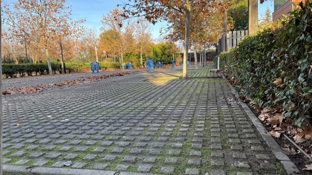 El Ayuntamiento de Alcalá, a través de la Concejalía de Obras y Mantenimiento Urbano, está acometiendo la mejora en el pavimento del aparcamiento de la Junta Municipal del Distrito IV en la calle Octavio Paz.