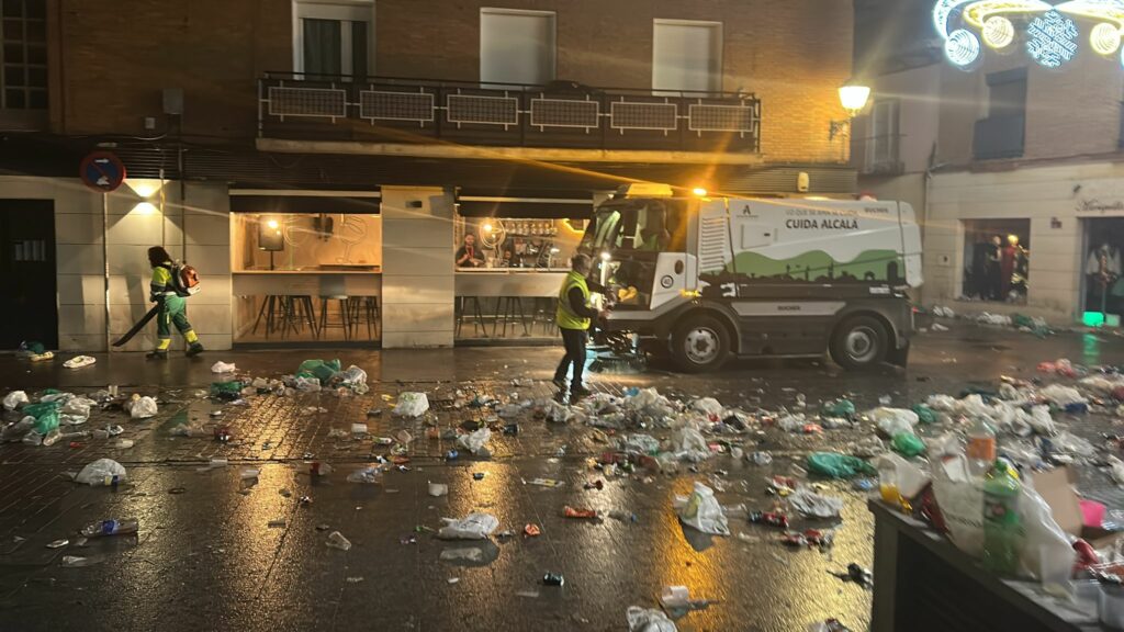 El Ayuntamiento de Alcalá de Henares desplegó un amplio dispositivo especial de limpieza viaria y recogida de residuos con motivo de las celebraciones de Preúvas y Tardevieja, que ha permitido retirar cerca de seis toneladas de residuos del centro de la ciudad en pocas horas.