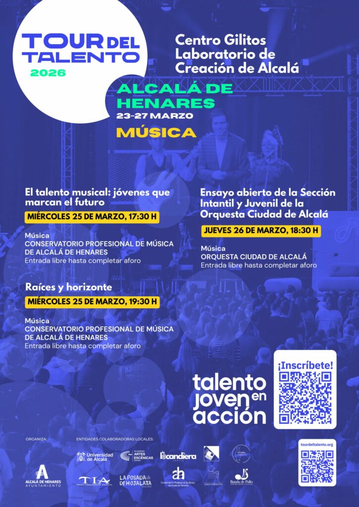 La programación completa de todas las actividades incluidas en el Tour del Talento puede consultarse en la web https://tourdeltalento.org/es/evento-2026/alcala-de-henares/actividades/