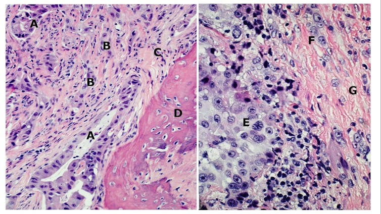 El cáncer más específicamente vinculado con la exposición al amianto es el mesotelioma. Con excepción de las radiaciones ionizantes, la única causa de esta enfermedad es la exposición al amianto. De hecho, sus registros han servido para conocer la magnitud de la exposición al amianto en todo el mundo. Esta es solamente la punta del iceberg de las muertes provocadas por el amianto. El tumor maligno que más frecuentemente provoca es el cáncer de pulmón.