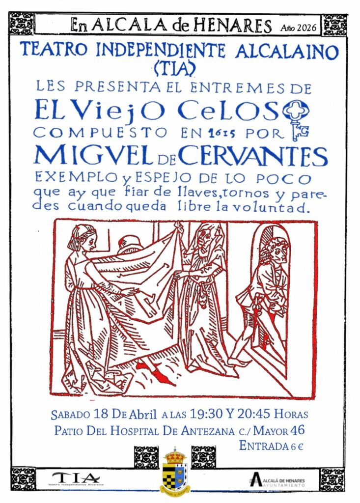 “EL VIEJO CELOSO” EN EL PATIO DE ANTEZANA llega a Alcalá de Henares de la mano de Teatro Independiente Alcalaíno, y en colaboración con la Fundación Antezana. De esta forma el teatro vuelve al patio mudéjar del Hospitalillo. Coincidiendo con el Abril de Cervantes y la Feriadel Libro, TIA representará el entremés cervantino “El viejo celoso”, uno de sus emblemáticos montajes.