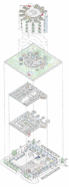 La propuesta ganadora de la edición 2021 ha sido la de “Living Systems”, como avanzábamos unas líneas atrás: un prototipo de hospital generado a partir de un pódium, un parque y una torre con una planta en forma de flor. ().