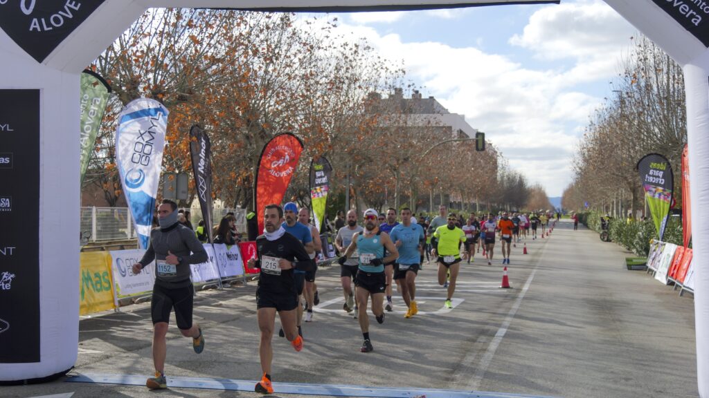 A las 12:00 horas se dio la salida conjunta a ambas distancias (5 y 10 kilómetros), una decisión ya clásica en la prueba que permite evitar madrugones excesivos y concentrar el ambiente competitivo y de público. El circuito, completamente urbano y muy plano, volvió a confirmar su fama de rápido: dos vueltas para el 10K y una para el 5K, con un recorrido pensado para mantener ritmos altos y animar a los corredores a buscar buenas marcas. La carrera finalizó en la Plaza Mayor de Alovera, donde se congregó mucha gente para animar la llegada a meta y recibir a los participantes en un ambiente festivo. El apoyo constante desde las aceras fue uno de los elementos más destacados de la jornada, reforzando el carácter popular y cercano de una prueba ya plenamente consolidada en el calendario regional.