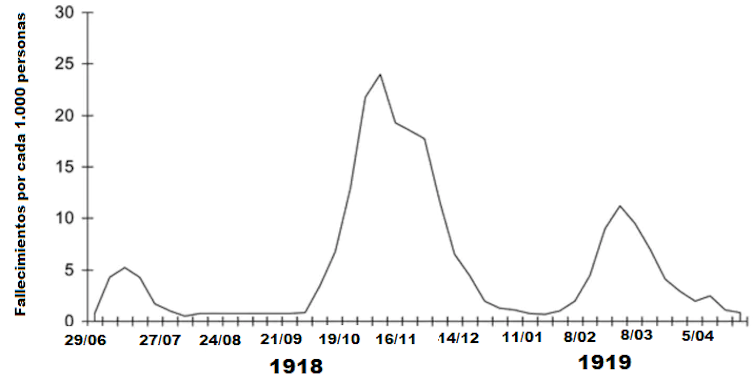 Por otro lado, otros pronostican una segunda oleada similar a la que se produjo en el otoño de 1918, el período más mortal de la gripe H1N1 (Figura 2).