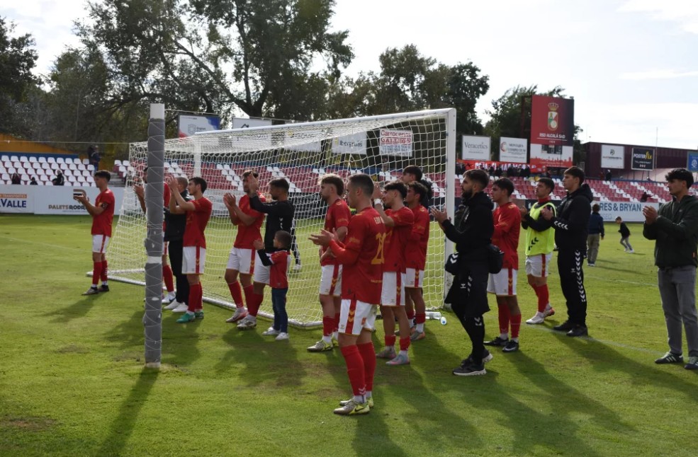 En el banquillo visitante, el más cercano a la dirección a Guadalajara, se encontraba alguien que bien podría pasar por natural de Aberdeen, en la Escocia del whisky de malta. Pues no, señor. Se hallaba Joselu Sánchez Méndez, alcarreño de la misma condición del bizcocho borracho y con muchas horas de navegación rojilla, capitán y entrenador del equipo complutense, estandarte de aquellos valores expandidos por las Brigadas, en su posición que mira al Este. Hizo así con la mano a modo de saludo al sector de afición ruidosa como un “hola, qué tal”, que no confundiese al equipo que encabeza su nómina, parte superior derecha del documento.