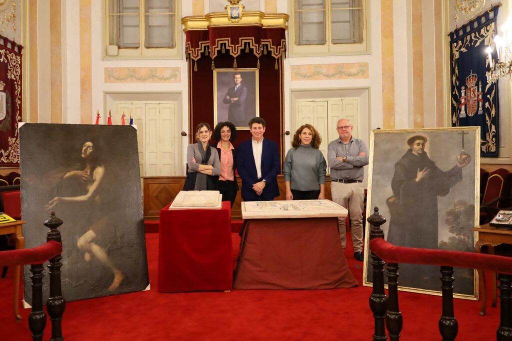 En esta ocasión, se presenta una selección de bienes muebles que ejemplifican esta labor discreta y continua. Entre ellos destacan: un óleo sobre lienzo de San Juan de Dios del siglo XVII; cuatro reposteros de 1945 pertenecientes al patrimonio de la Casa Consistorial; tres placas direccionales de la antigua señalética de la ciudad; la reproducción del Mosaico de Cupidos de Complutum, realizada en la década de 1990 a partir del original conservado en el Museo Arqueológico Nacional, recientemente restaurada; una maqueta de la Alhambra realizada en la segunda mitad del siglo XIX en la escuela de Rafael Contreras, y también un lienzo de Santa María Egipciaca del siglo XVII.