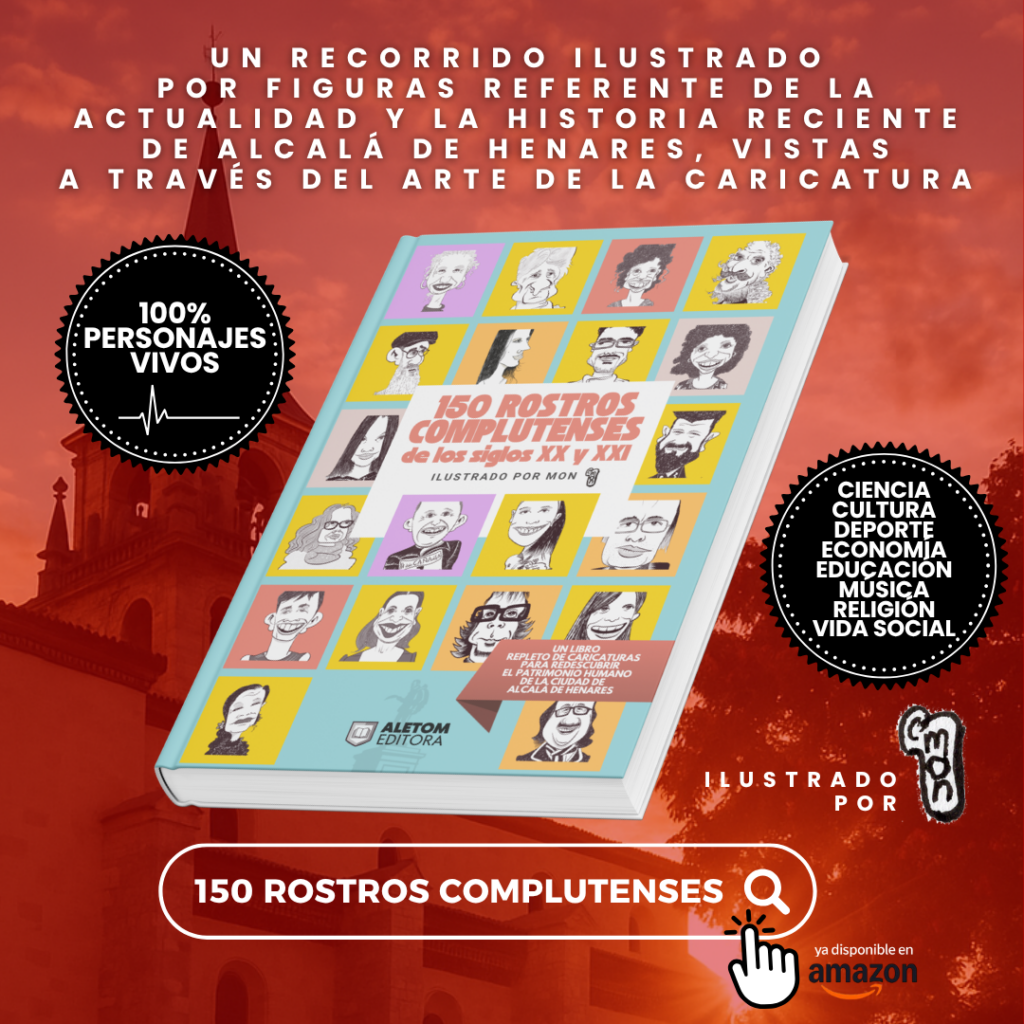 Vuelve el humor y el dibujo del ilustrador alcalaíno MON, creador gráfico del ‘universo complutense’, esta obra nos invita a un recorrido visual por algunas figuras clave que han moldeado y moldean la identidad complutense en el último siglo y lo que va del presente. ‘150 Rostros Complutenses de los siglos XX XXI’ es mucho más que un libro de ilustraciones; es todo un homenaje a parte del patrimonio humano de Alcalá de Henares de los últimos años.