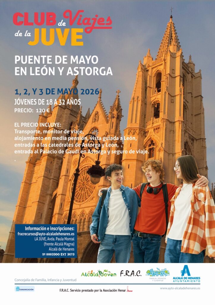 La Concejalía de Juventud organiza para el puente de mayo un viaje a León y Astorga. El plazo de inscripciones finaliza el 25 abril o cuando se cubran todas las plazas disponibles.