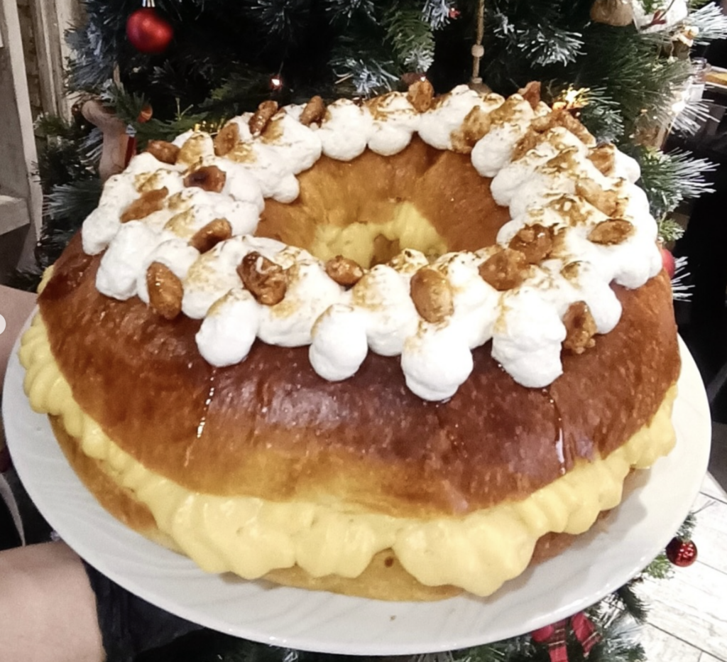 La receta de este roscón tan singular está inspirada en la antigua costrada alcalaína, uno de los dulces más representativos de la ciudad complutense, con almendra tostada en el exterior y un relleno de crema. El roscón está elaborado por Plademunt -restaurante ganador en 2024 el premio a la mejor torrija tradicional y la mejor ensaladilla de Madrid-. Para hacer encargos hay que ponerse en contacto con ellos directamente.