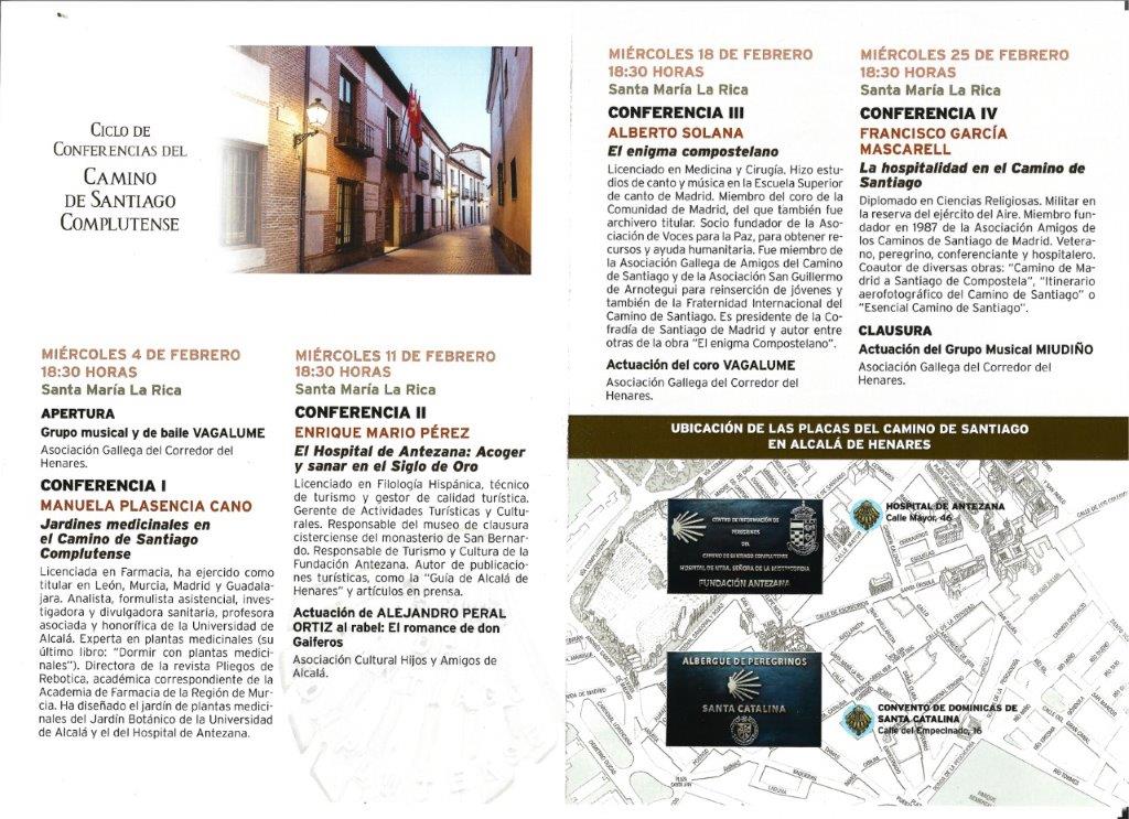 Asimismo, la teniente de alcaldesa ha anunciado la firma en el marco de las conferencias un nuevo convenio de colaboración entre la Asociación de Amigos del Camino de Santiago y el Ayuntamiento de Alcalá de Henares que «afiance la apuesta de la ciudad por una actividad que además reúne el esfuerzo de la Asociación Gallega Corredor del Henares y de la Asociación de Hijos y Amigos de Alcalá de Henares».