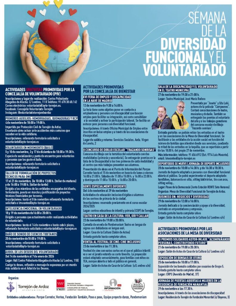 Juntos se puede construir una sociedad más inclusiva y solidaria. Torrejón de Ardoz está celebrando la Semana de la Diversidad Funcional y el Voluntariado con un variado programa de actividades destinadas a fomentar la participación comunitaria y fortalecer los lazos entre los vecinos de la ciudad.