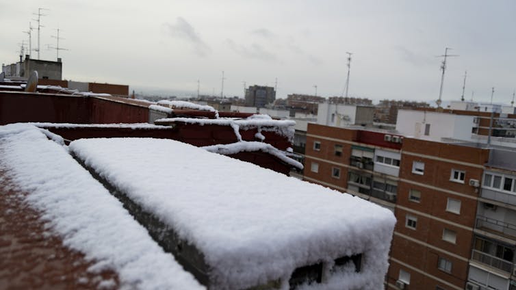 Nieve en las azoteas de Madrid el 28 de enero de 2026. Fer99/Shutterstock.
