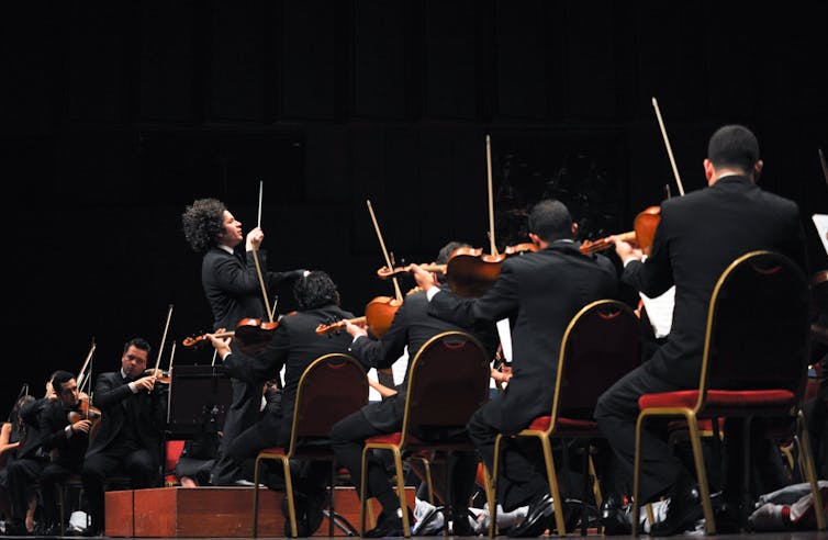 Gustavo Dudamel dirigiendo a la Orquesta Juvenil Simón Bolívar en Oslo, en 2010. Miguel O. Strauss/Flickr, CC BY-NC.