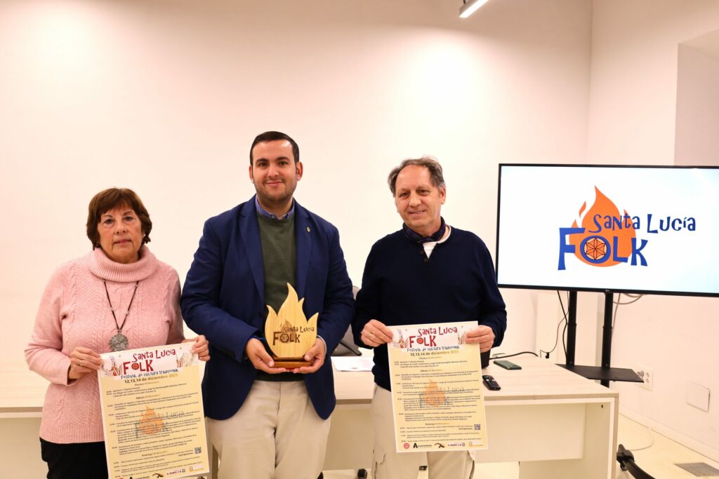 Alcalá acoge del 12 al 14 de diciembre la segunda edición del Festival Santa Lucía Folk, un encuentro dedicado a la música tradicional, la antropología cultural y las expresiones festivas históricas de la ciudad. Junto a Andrés Huguet y Mari Carmen Díaz, el concejal de Fiestas y Tradiciones Populares Antonio Saldaña ha presentado este festival organizado por la Asociación Cultural Hijos y Amigos de Alcalá y el Grupo Folk Pliego de Cordel, en colaboración con el Ayuntamiento de Alcalá, que reunirá pasacalles, conferencias, conciertos, narración oral y actividades para todos los públicos.
