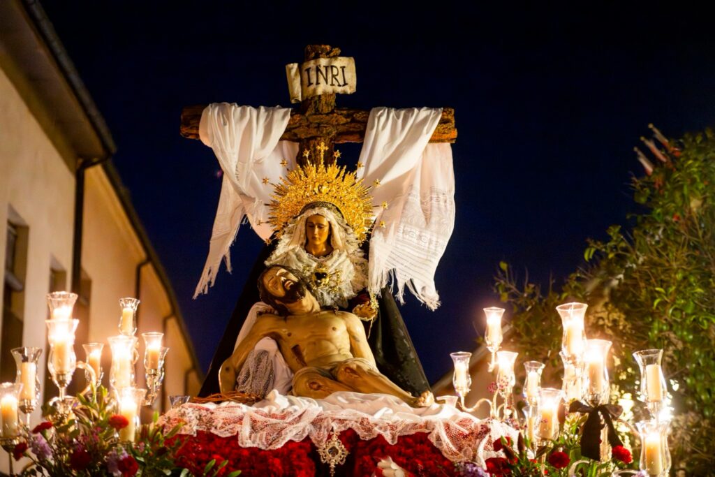 De entre todas las procesiones de Alcalá, esta es muy especial porque sobrecoge. Un cortejo marcado por el silencio y la solemnidad solo es roto puntualmente por el sonido de una campana. Muchos fieles y vecinos acudieron un año más a ver la procesión.