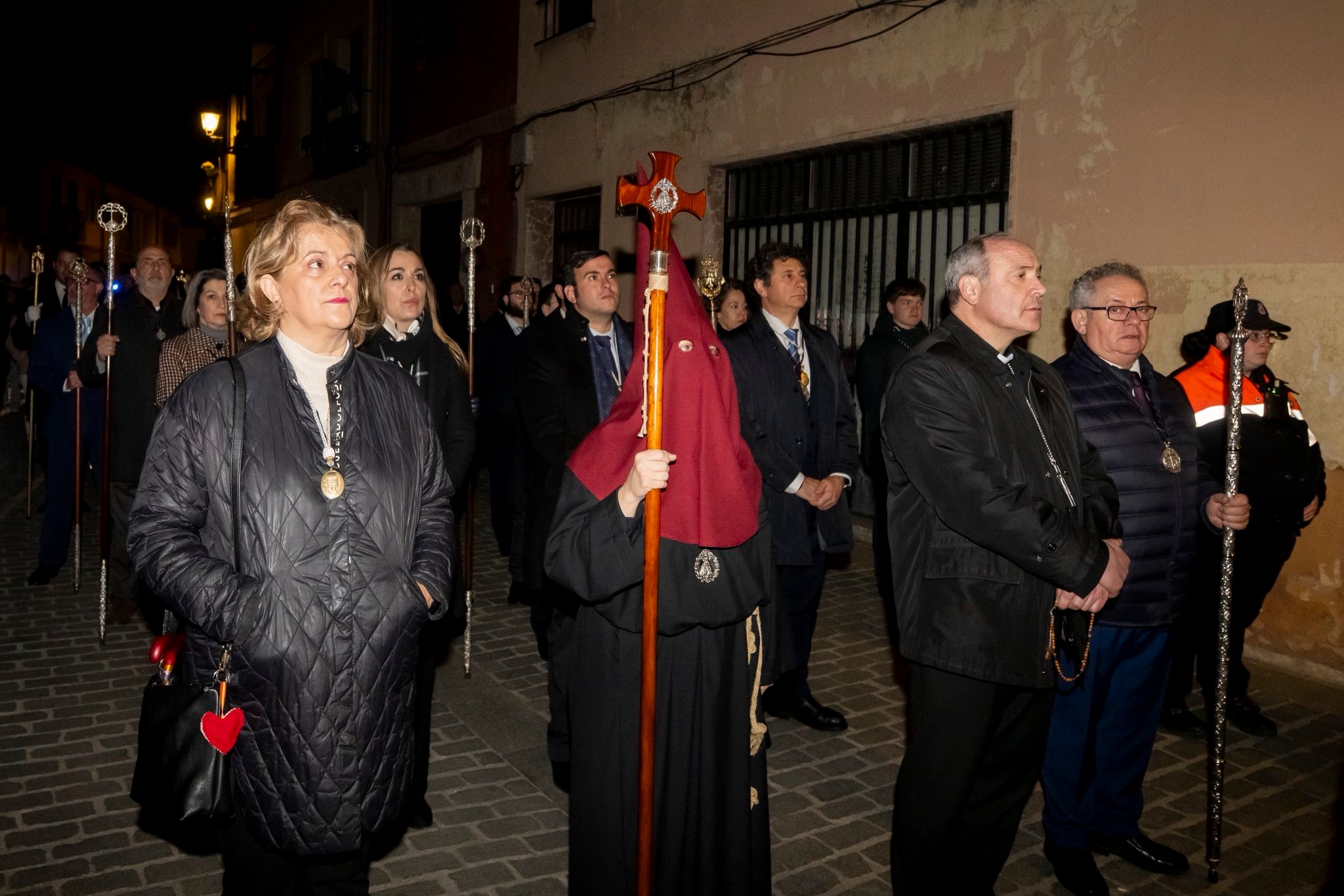 El año pasado no pudo completar su recorrido porque, nada más salir, empezó a llover y tuvo que regresar rápidamente. En este 2026, a pesar del frío no llovió, y sí se pudo celebrar la procesión de penitencia de la Hermandad Sacramental del Santísimo Cristo de los Desamparados, María Santísima de las Angustias y el Señor de la Divina Misericordia en las Negaciones de Pedro. A las 21:00 horas partió desde la Catedral. Magistral.