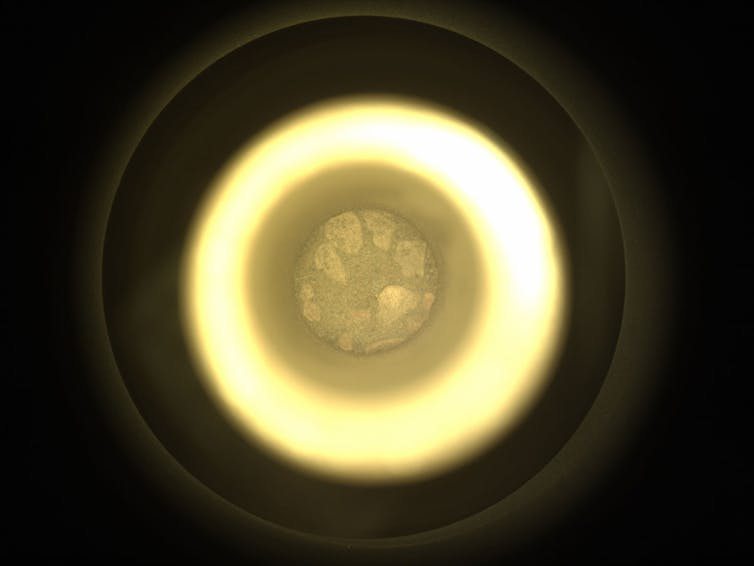 Esta imagen del regolito marciano (roca y polvo rotos) fue captada el 2 de diciembre de 2022 por la Cámara del Sistema de Muestreo y Almacenamiento (conocida como CacheCam) del vehículo explorador Perseverance de la NASA. NASA/JPL-Caltech.