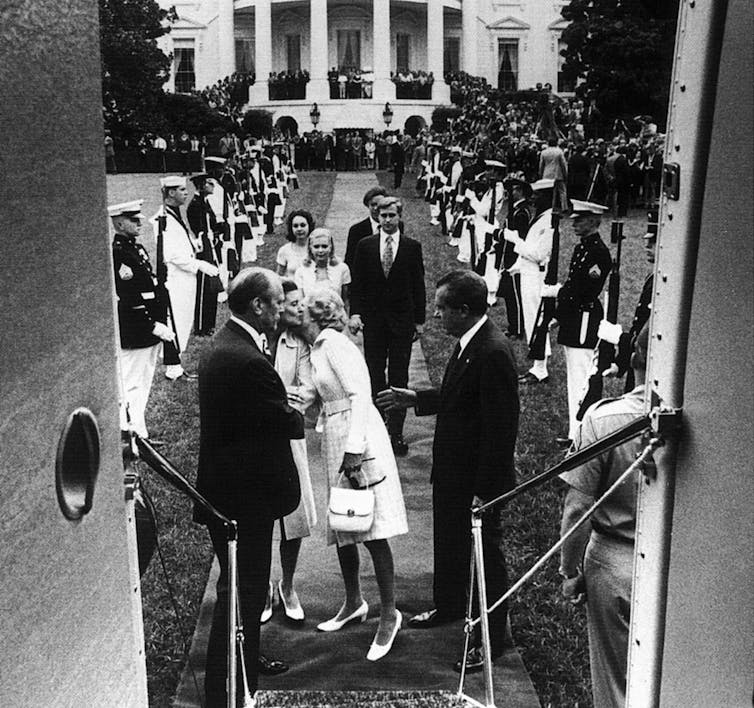 Richard Nixon abandona la Casa Blanca tras su dimisión el 9 de agosto de 1974. Wikimedia Commons / Oliver F. Atkins.